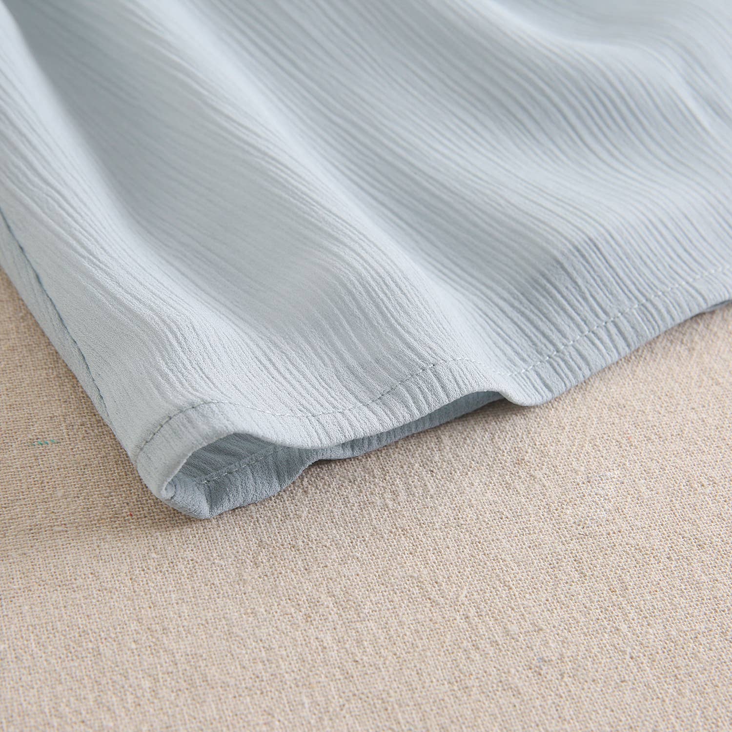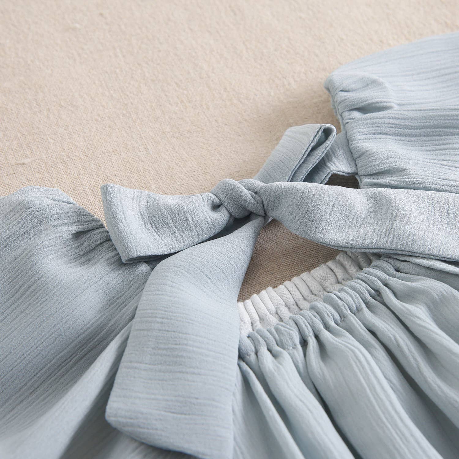 Aquamarine dress for ceremony with ruffles on the sleeve and tied with lacing at the top of the back