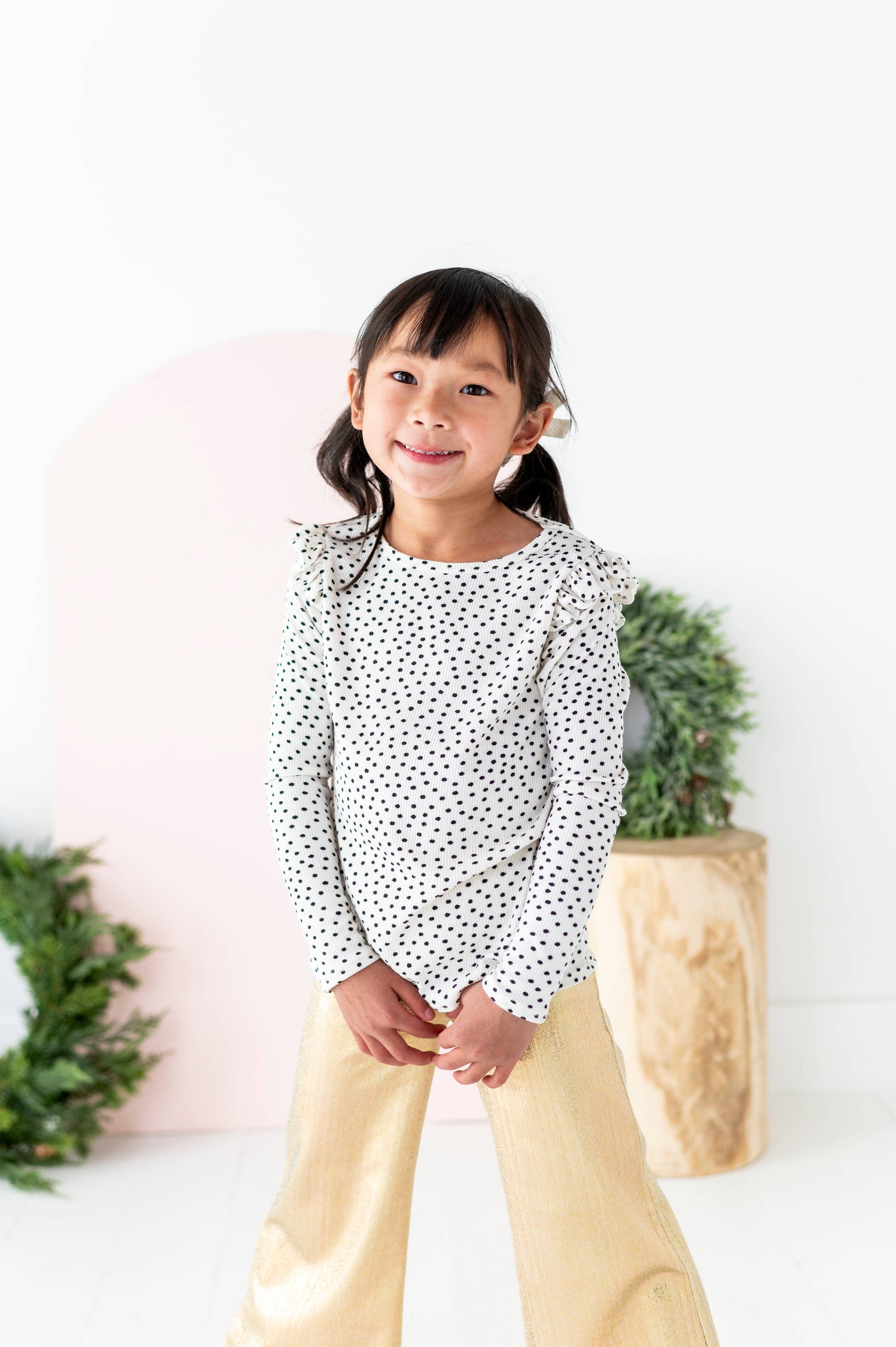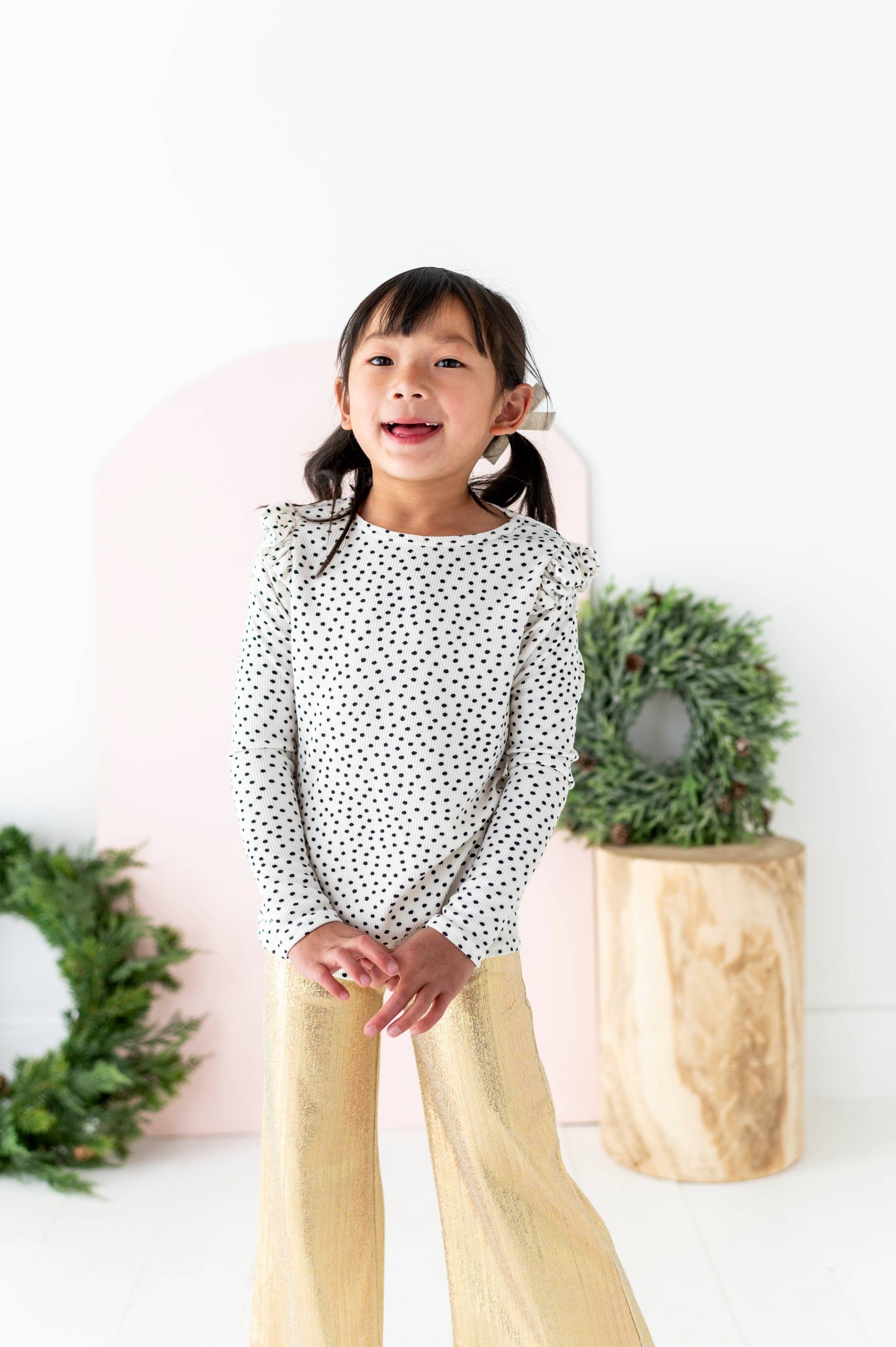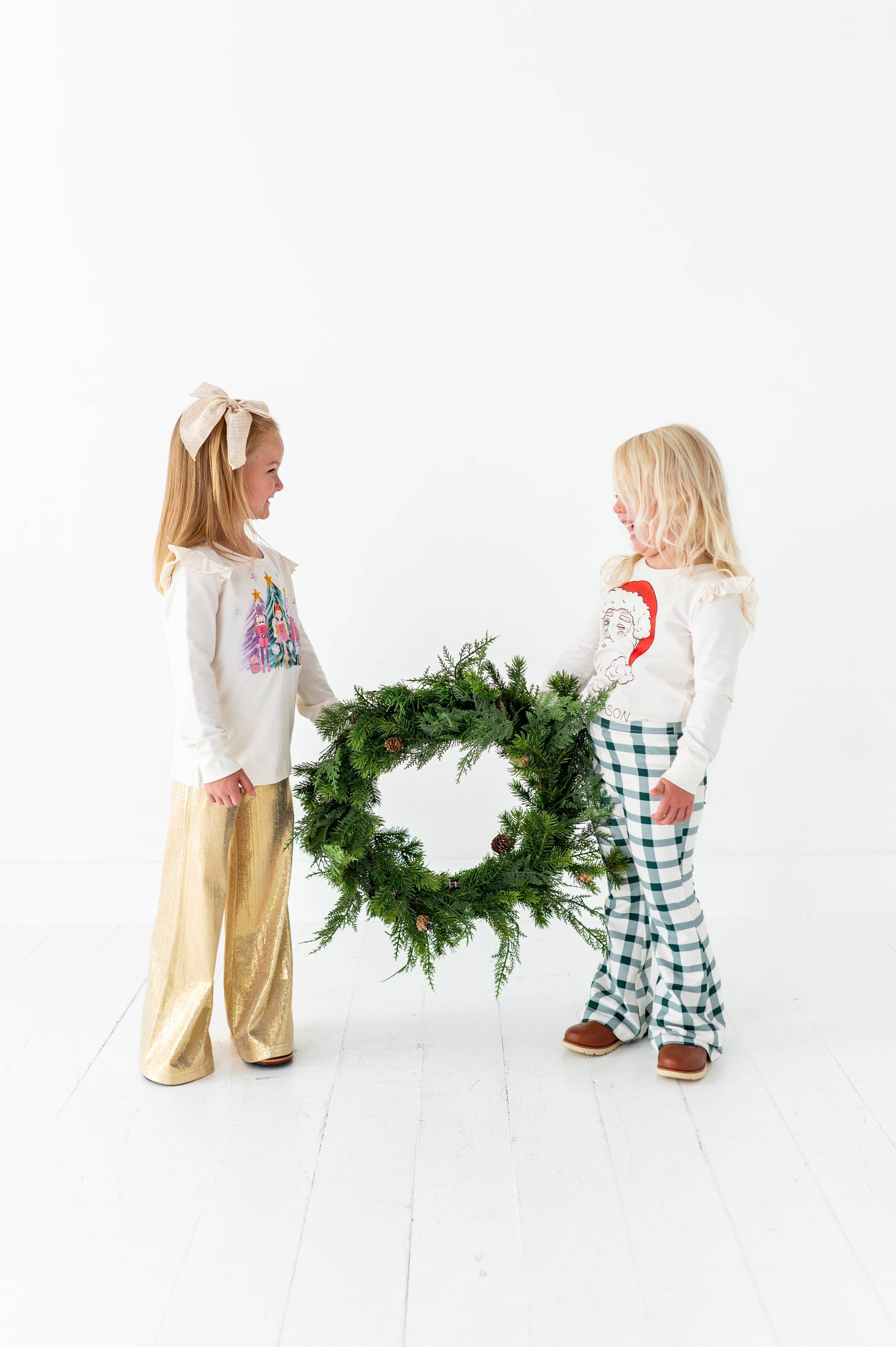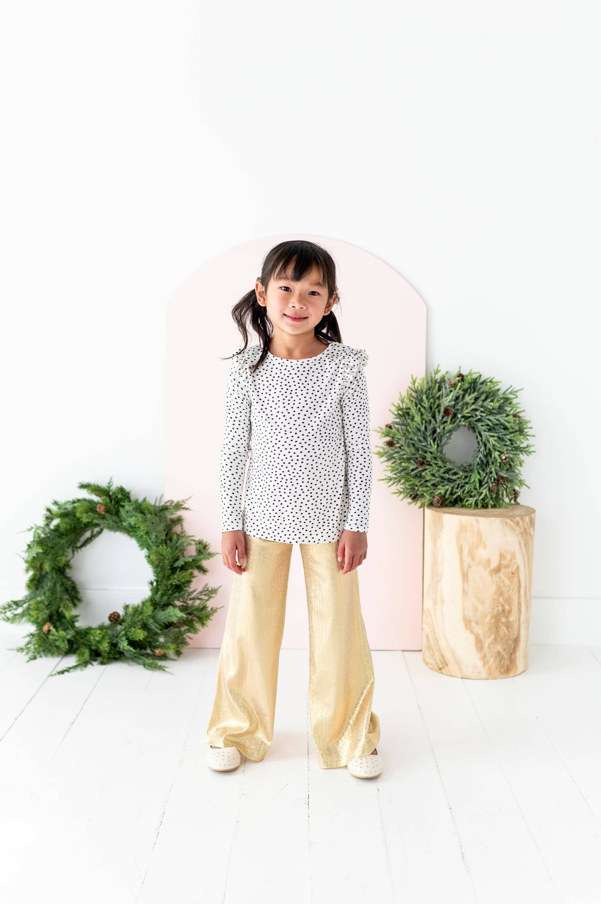 SIZING: This style runs true to size with a slim fit throughout the hips and a wide flare at the legs. We recommend ordering the pant size your little one will be in during winter when they will wear this most :) We don’t recommend sizing up in this style as you do not want the waist too big or length too long. If you are inbetween sizes or typically order up for more length you are more than welcome to do that for this style but the overall fit might be a little more oversized than you see pictured on our models. All of our models in the listing pictures are wearing their true sizes or 1/2 size down (if inbetween sizes) for reference.