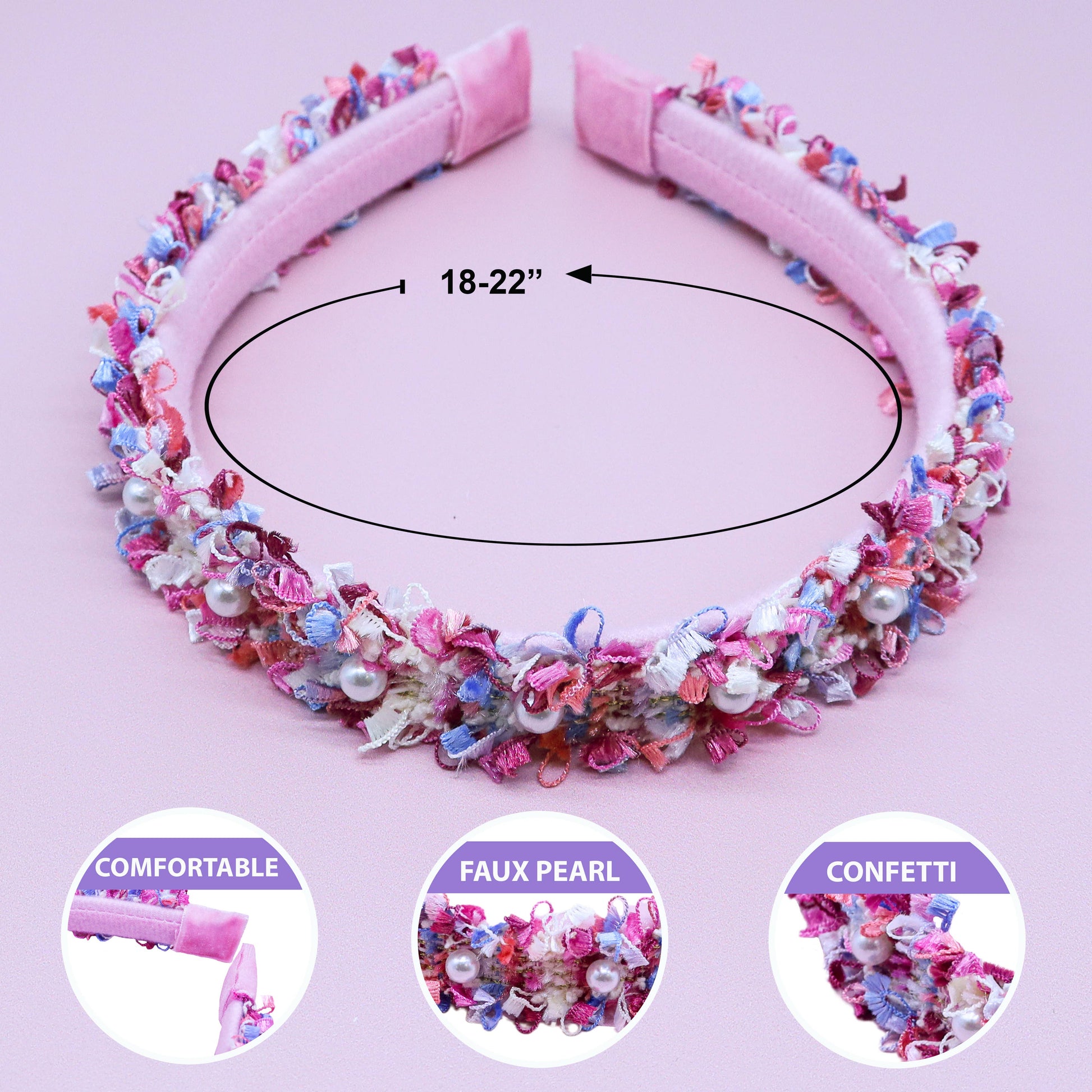 Comfortable to wear all day long Braided headbands for girls who want to look fashionable at school, hanging with friends, or just lounging at home. Made with fun confetti material on a hard headband construction. Perfect for children's boutiques, fashion boutiques, hair salons, and gift shops.