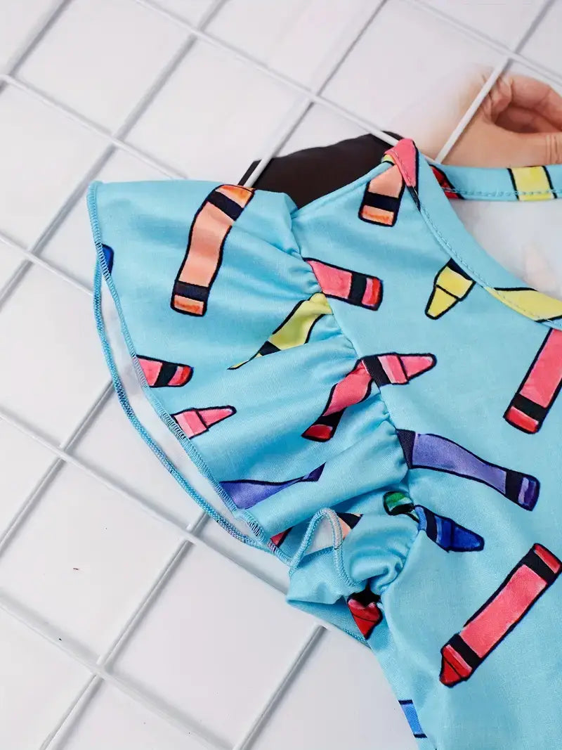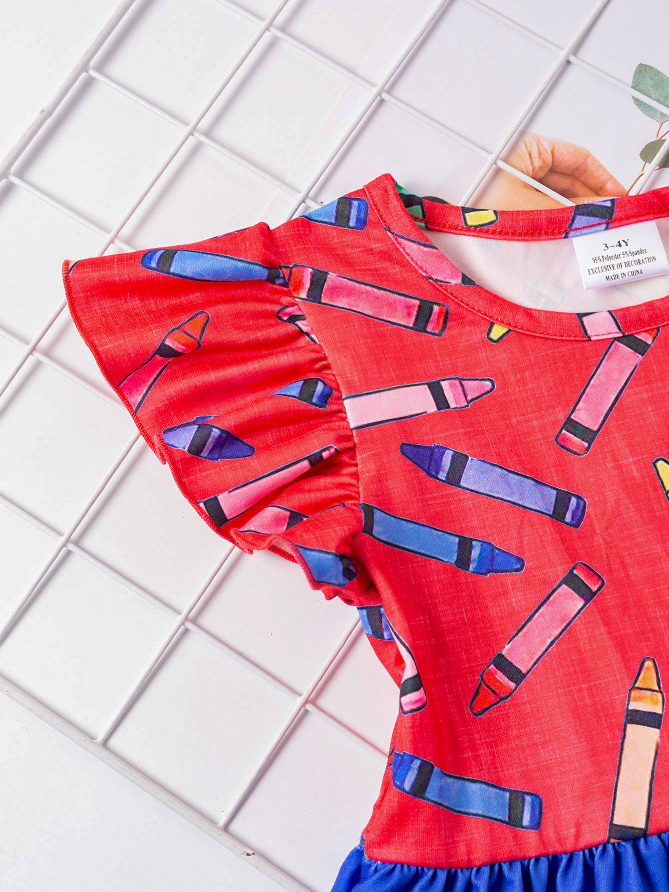 Girls Colorful Crayon Ruffle Flare Dress for back to school