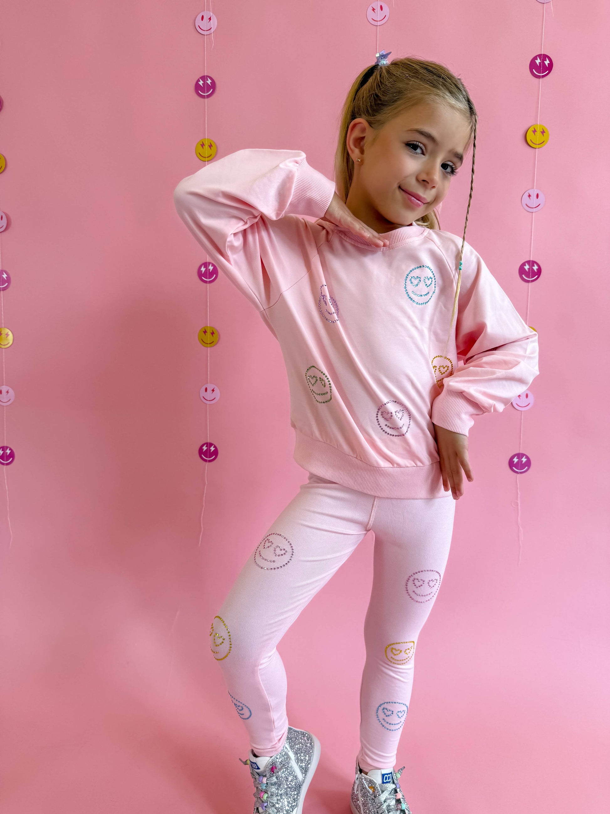 Upgrade your fall wardrobe with our Heart Smile Set. This two-piece comfort set features stamped heart eye smile face designs in various colors to add a touch of fun to your style. Stay comfortable and trendy this season!
