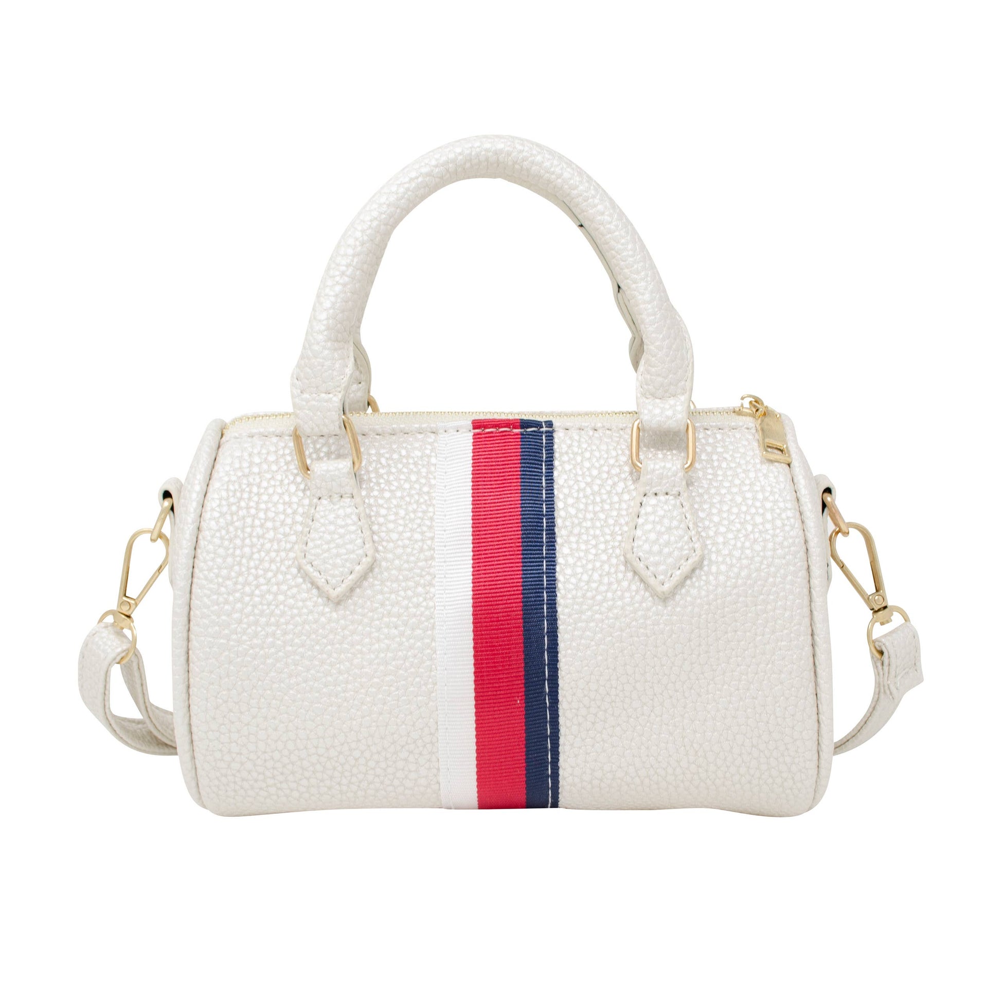 Made with high-quality materials and designed with young adventurers in mind, this bag is the perfect accessory for your child's next adventure. Featuring bold red, white, and blue stripes, this duffle bag is both stylish and functional. The spacious main compartment provides room for all of your child's essentials, while the sturdy handles make it easy for them to carry their bag on the go. Also included is a matching crossbody strap.