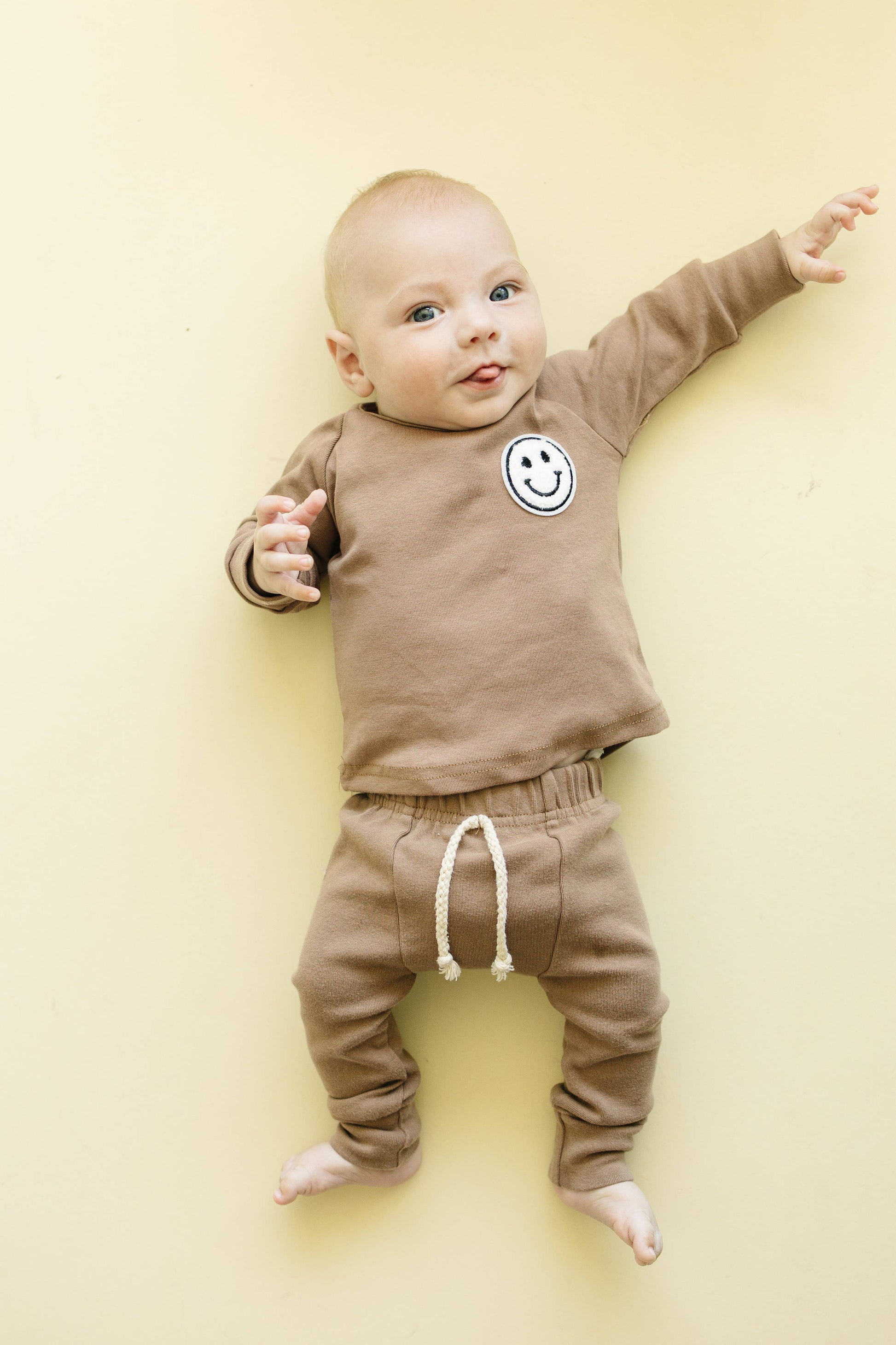 This two-piece set is crafted from oh-so-soft cotton, making it perfect for daily lounging! Stylish enough for outings yet cozy and comfortable for play, it’s an essential for any wardrobe. The fun smiley patch adds a quirky touch to this must-have piece.
