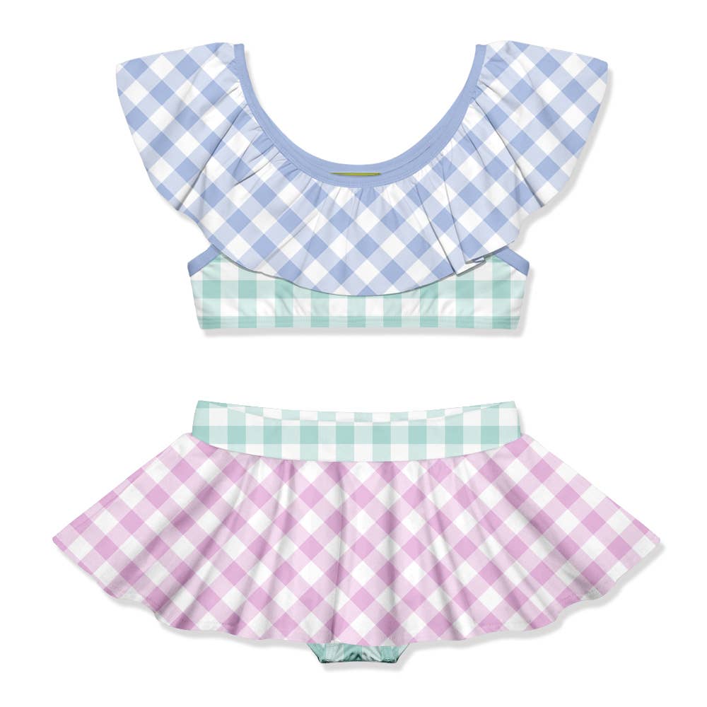 Periwinkle Gingham Ruffle Skirted Bikini Swimsuit