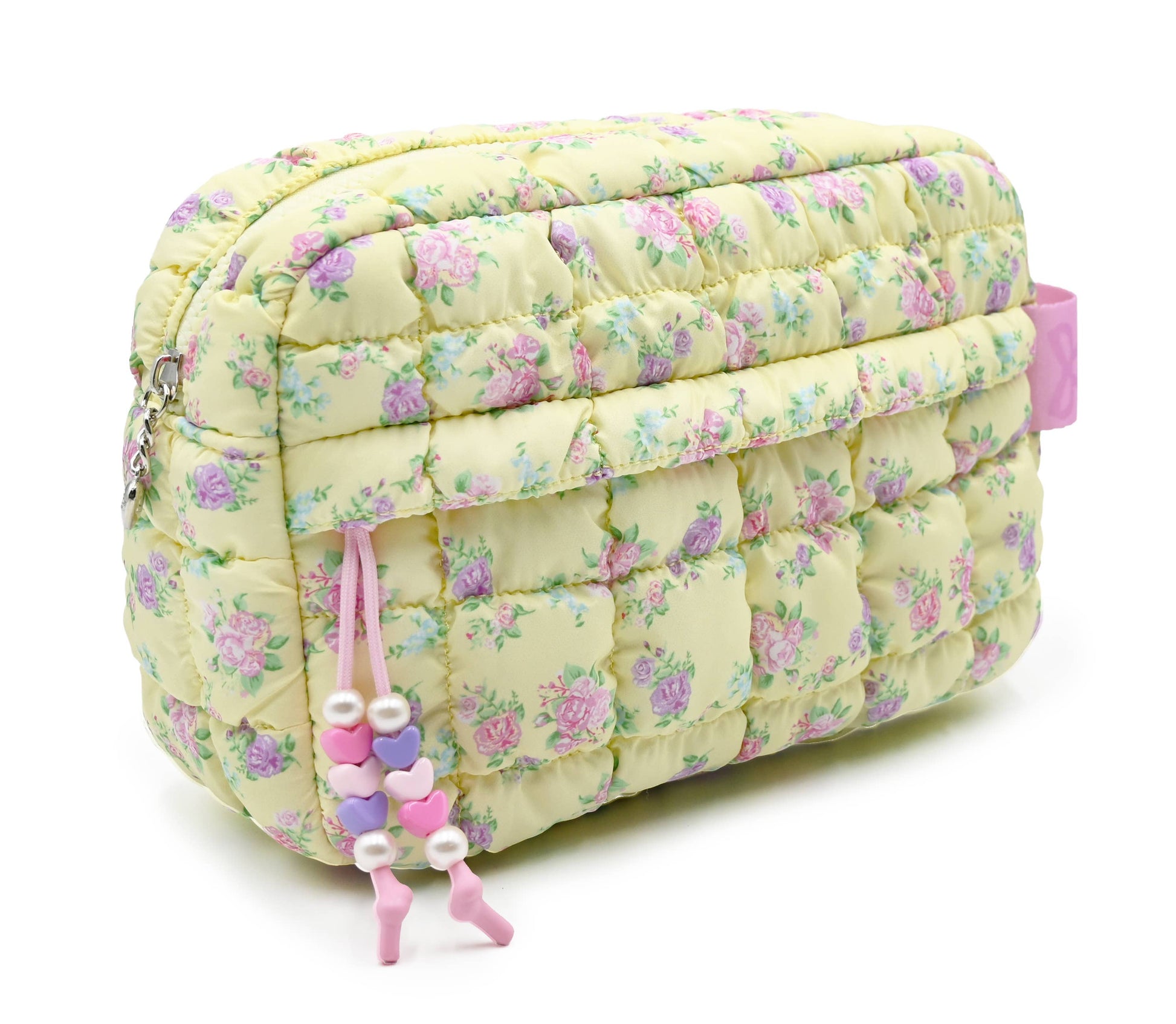Fresh, fun, and oh-so-chic— our newest quilted scrunchies pouch is the ultimate organization piece! Our brand new butter yellow scrunch is here - now in our ditzy floral print! This puffed case features an additional front pocket with a beaded zipper pull for extra storage. Lightweight yet durable, it’s perfect for stashing cosmetics, school essentials, or little must-haves on the go.