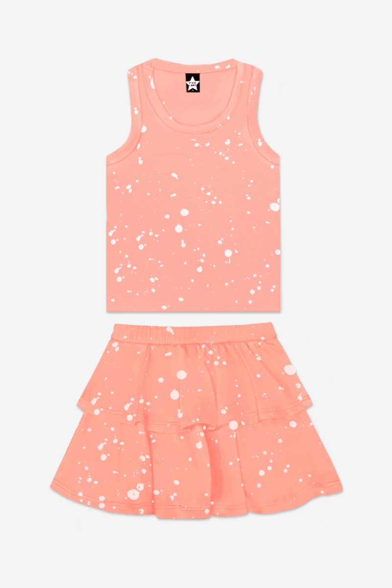 Simply Soft Cropped Racerback Tank & Ruffle Skort - Summer Sherbet White Splatter
