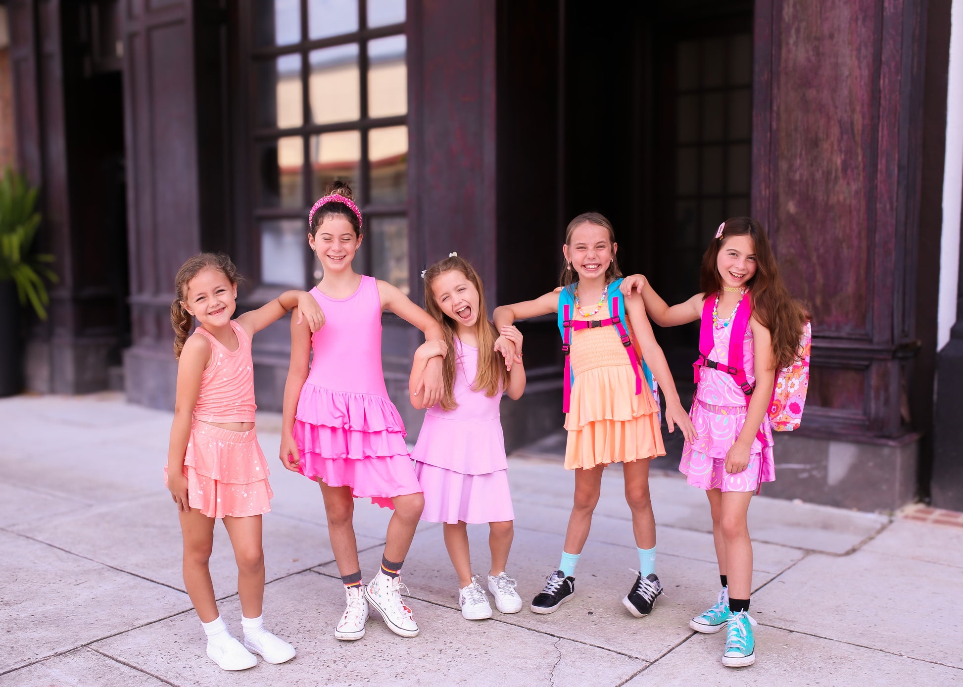 This super fun fashion set is made in our Simply Soft fabric and doesn't shrink, fade or pill! This style features a fitted racerback tank and a double ruffle skater skort. Wear this as a set or switch it up and match back to our solid tanks or bottoms.
